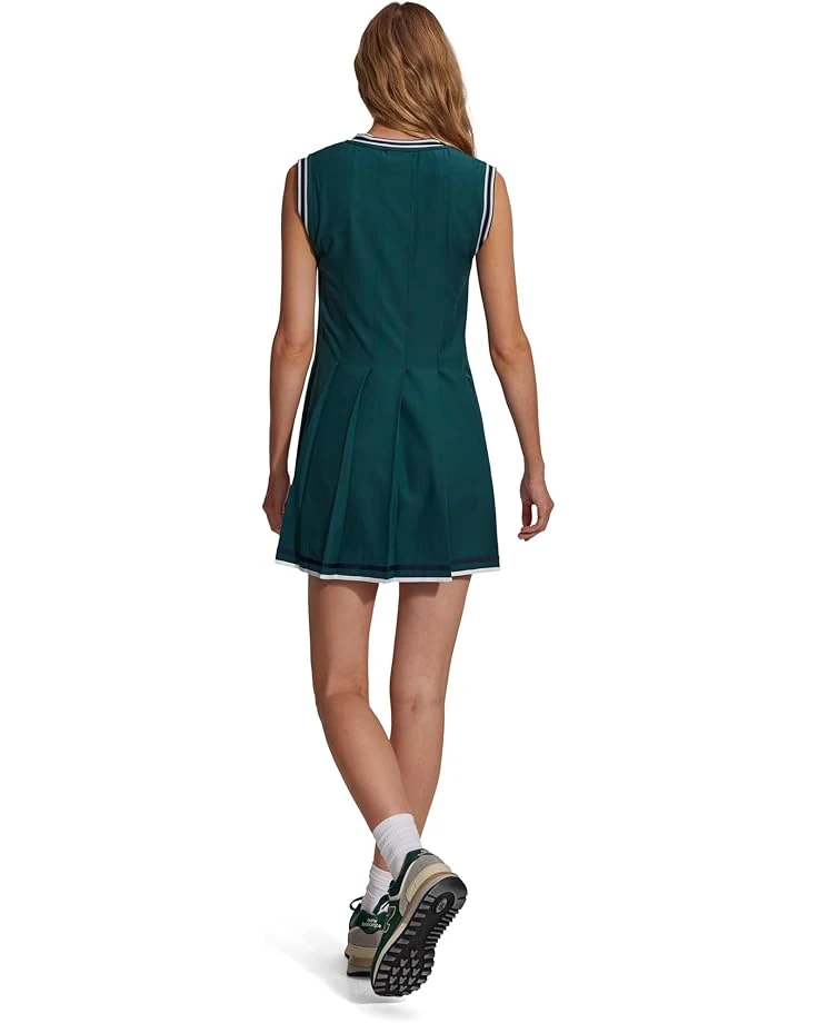- Unleash your chic wearing Varley Amanda Court Dress, a trendsetter’s dream! Embrace mid-thigh allure in this sleeveless V-neck sheath. Its pull-on ease and tape hem detail add flair to your day, while the pleated back ensures a flattering fit. Unlined for breathability, it’s perfect with your favorite bra and shorts combo.