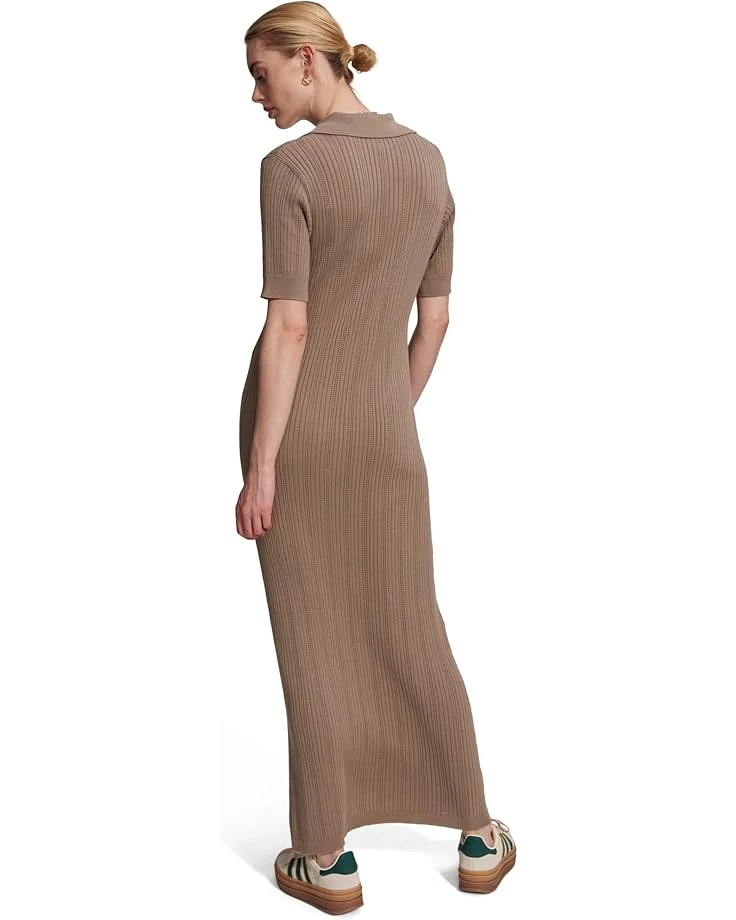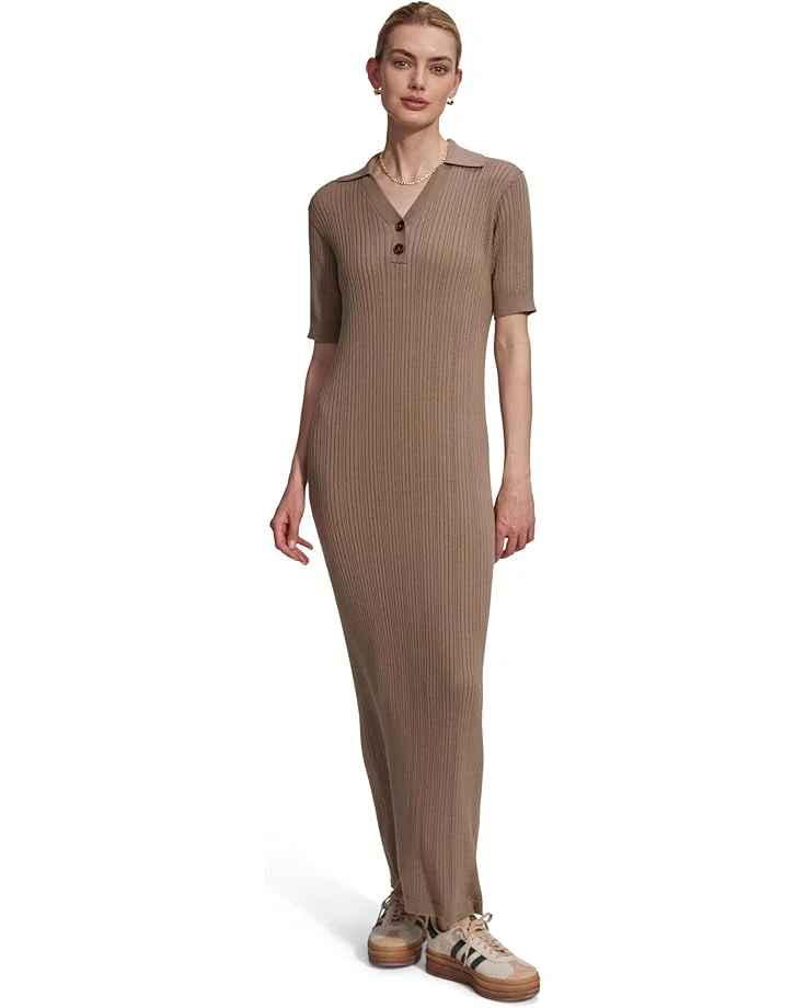 - Let your fashion persona blossom in this sartorial masterpiece, the Varley Andrea Pointelle Knit Dress. Elevate your style game with its collared V-neck and trendy elbow-length sleeves. Effortlessly elegant, this dress features a two-button design for added flair. With its ankle-length silhouette and body-hugging fit, you’ll command attention wherever you go.
