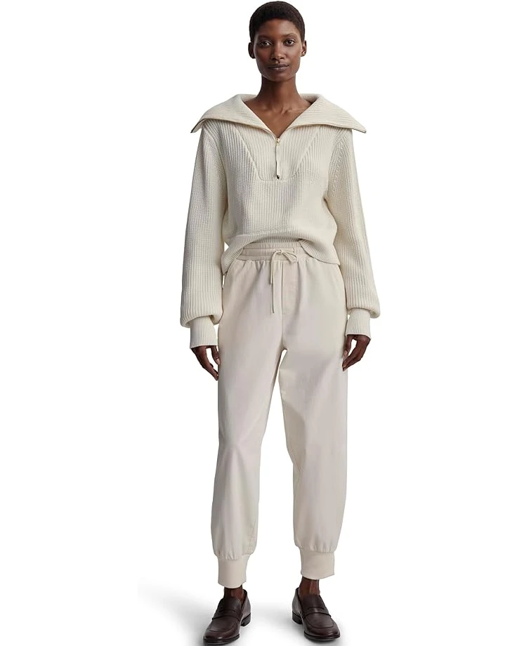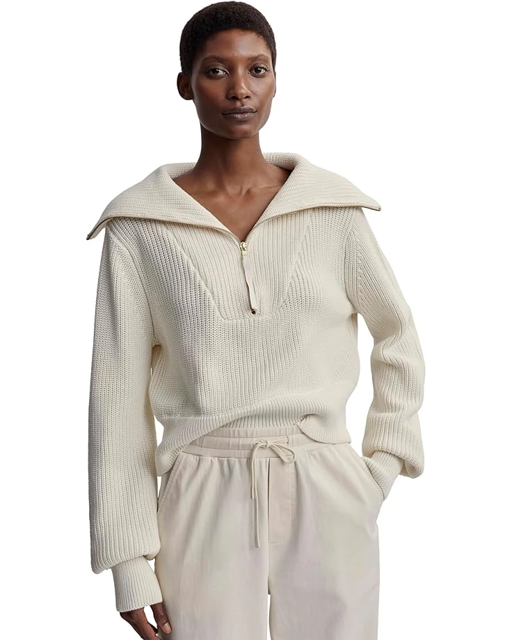 - Varley Mentone Top features a ribbed fold collar with half front zip, perfect for a cozy warm chic aesthetic. Available in three color options.
