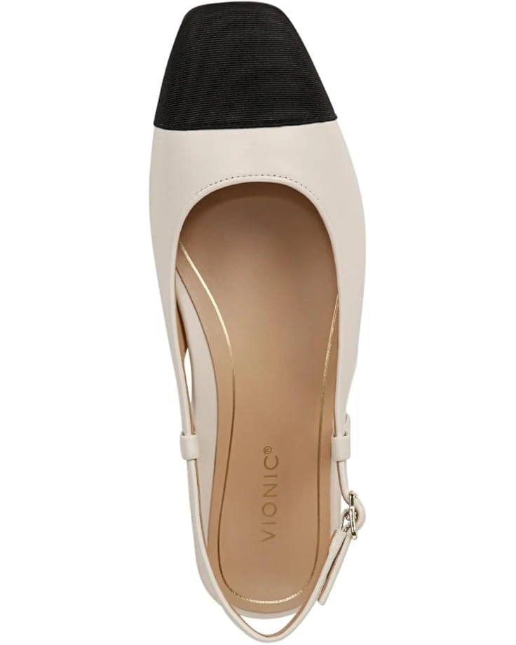 - Stride with graceful elegance wearing the VIONIC® Petaluma Dress Heels. This square toe pair features fabric upper with low-stacked heels and buckled slingback strap closure.